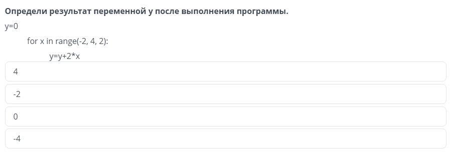Программа содержит следующие итерации, где x принимает значения из списка [-2, 0, 2], следовательно цикл проработает 3 раза.