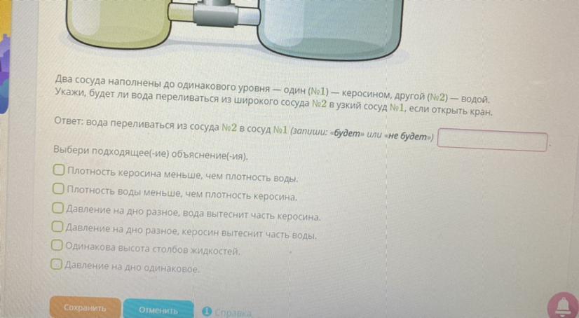 802-840 кг/м3 (плотность керосина) < 997 кг/м3 (плотность воды)