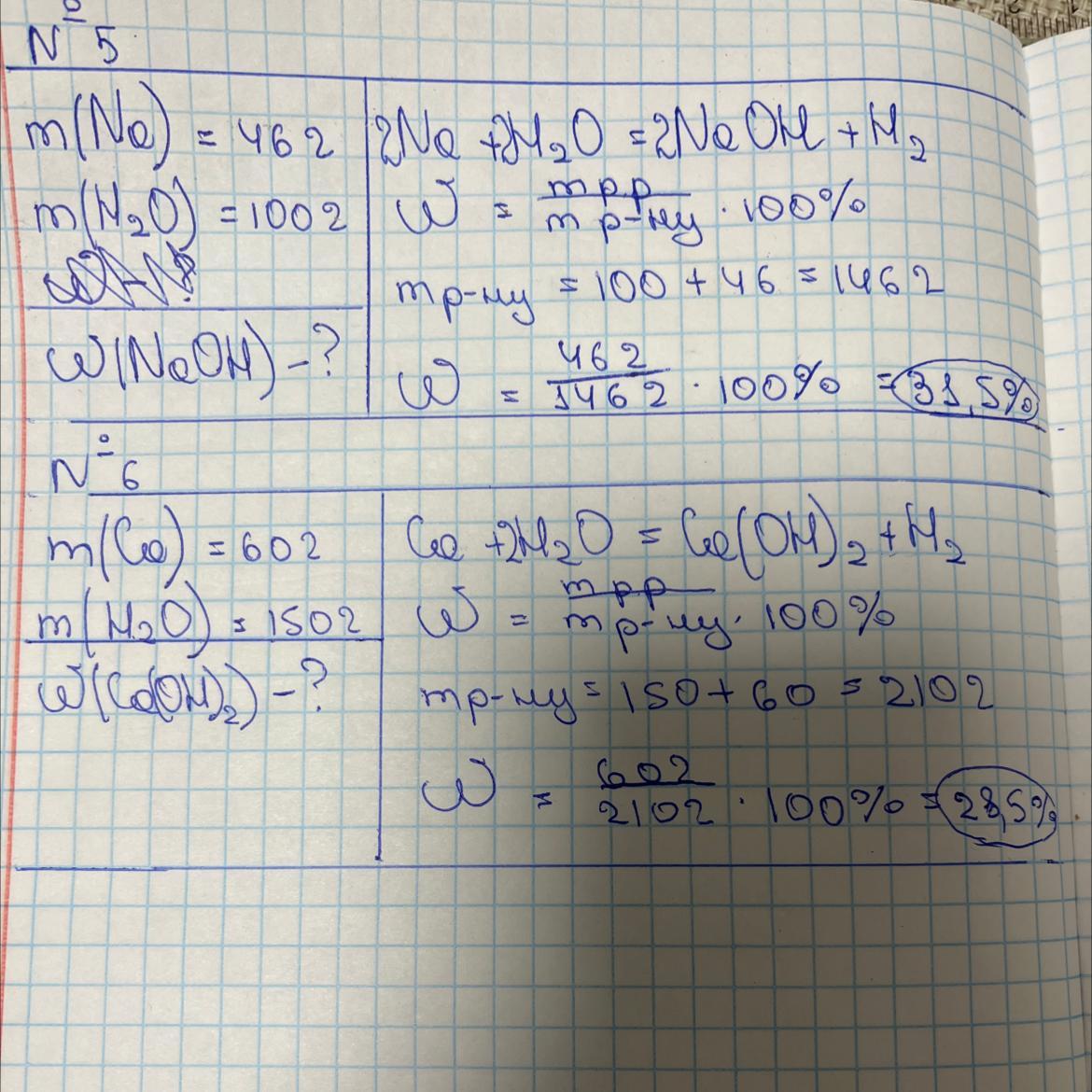 5. Рассчитайте процентную концентрацию (%) раствора, полученного при добавлении 46 г натрия в 100 г воды.