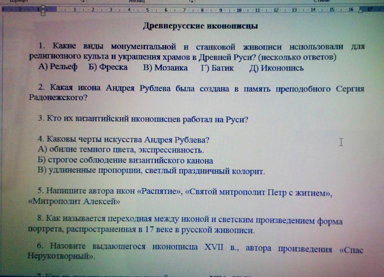 4. Каковы черты искусства Андрея Рублева? т