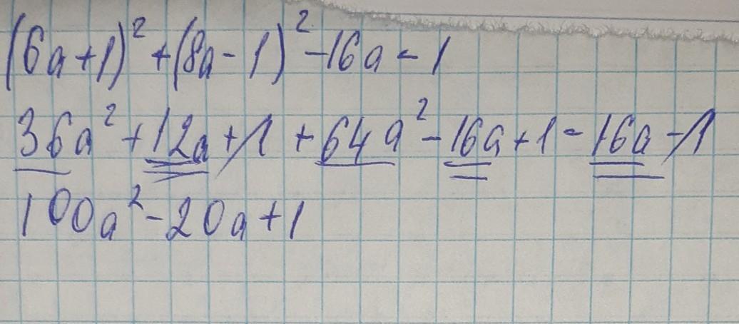 подайте у вигляді квадрата двочлена вираз (6a+1)²+(8a-1)²-16a-1
