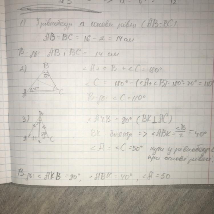 2) Бічна АВ=АС-5=20-5=15
