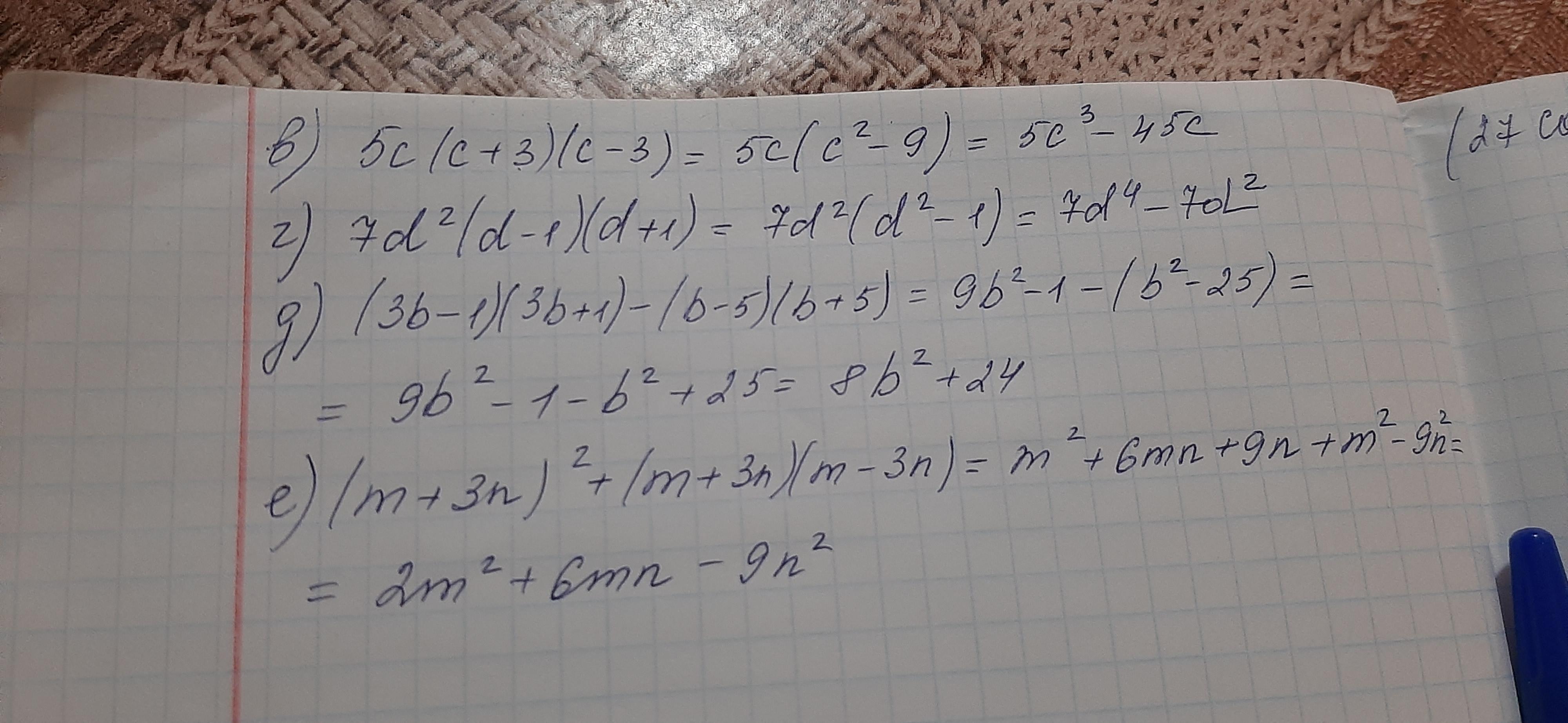 д)(3b-1)(3b+1)-(b-5)(b+5)