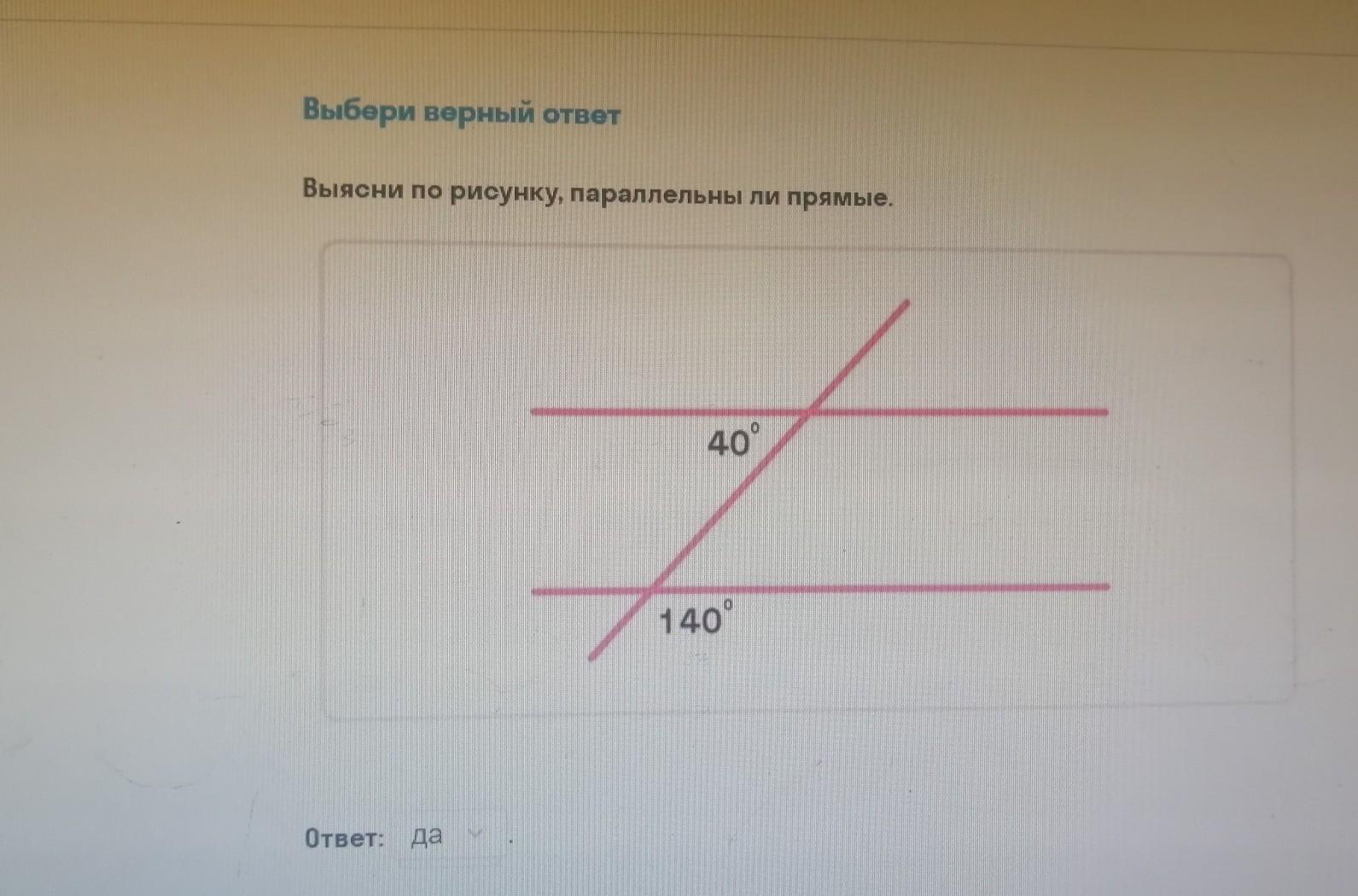 Внутренние накрест лежащие углы равны по 40 градусов, значит прямые параллельны
