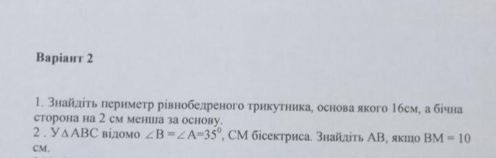 16-2= 14 см (довжина кожної бічної сторони)