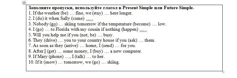 10. Если завтра пойдет снег, мы пойдем кататься на лыжах.