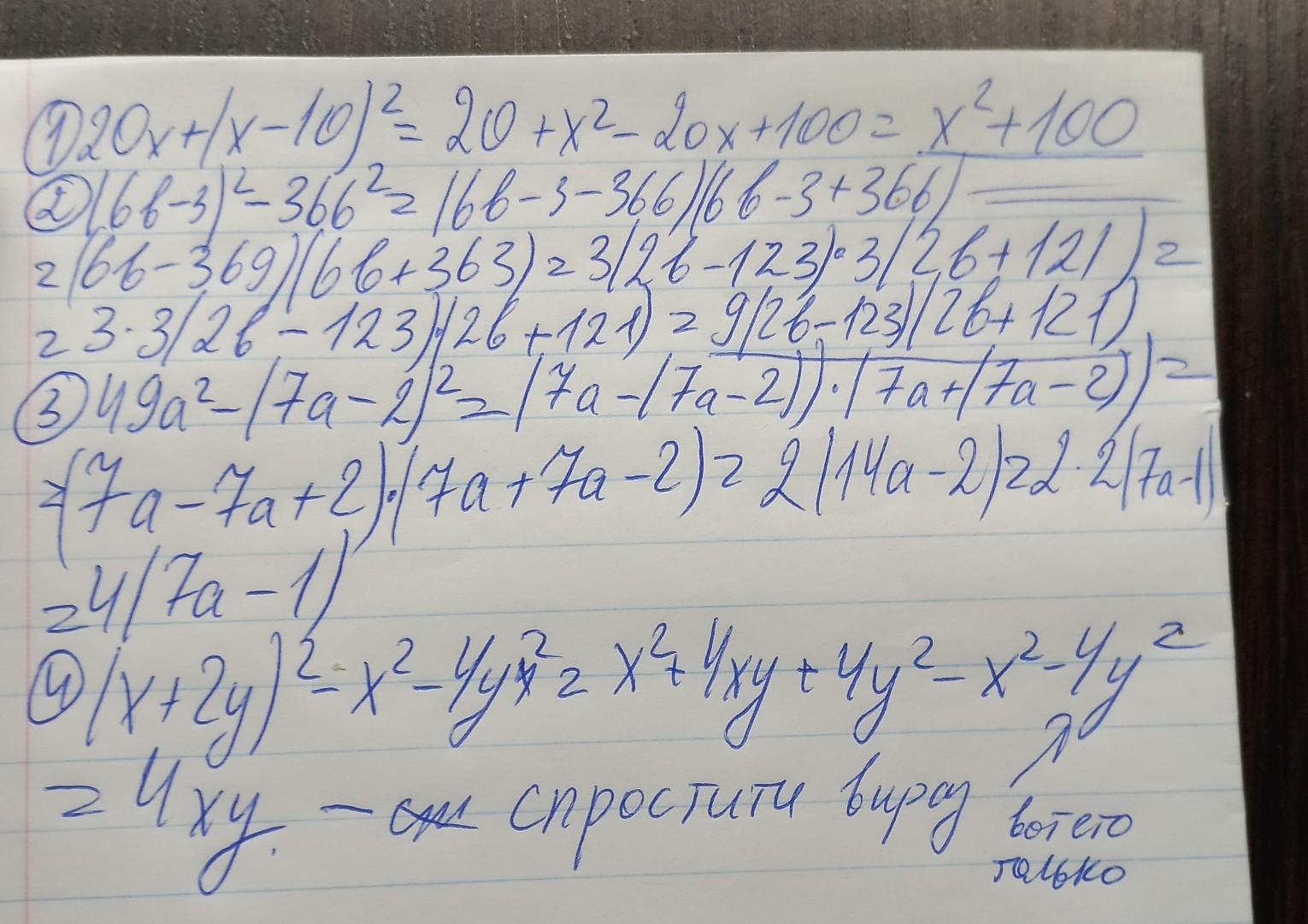 4) (x + 2y)^2 – x^2 – 4у^2.