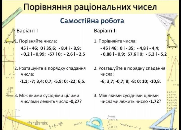 1)45<46; 0<35; 4,8>4,4; 0,88>0,9; 57,6>0; 5,3>5,2