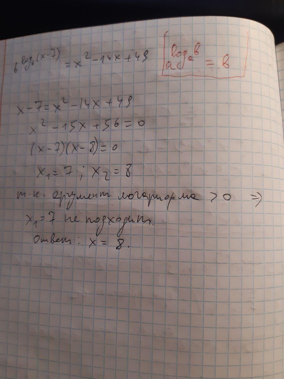 если основание у логарифма 6, то слева основное логарифмическое тождество...