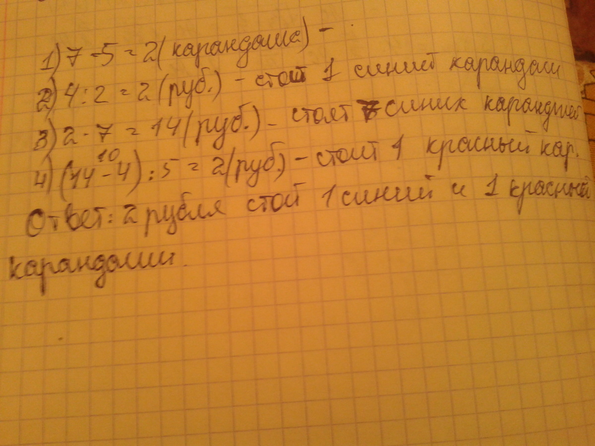 3)2×7=14 (руб.)-стоят 7 синих карандашей.