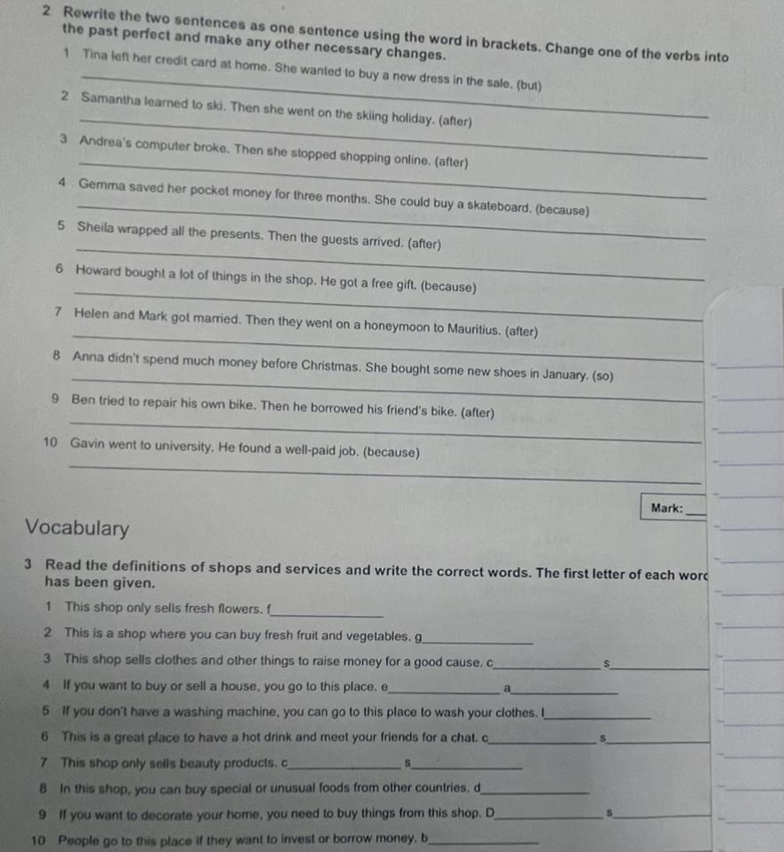 1. Tina wanted to buy a new dress in the sale but she had left her credit card at home.