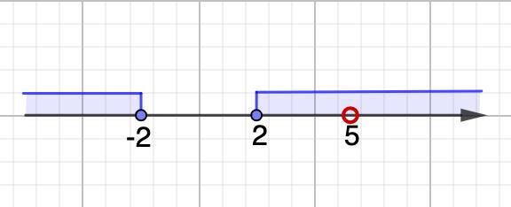 D(y) = (-∞; -2] ∪ [2; 5) ∪ (5; +∞)