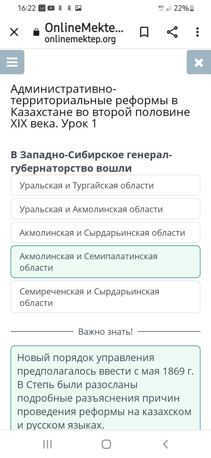 Административно-территориальные реформы в Казахстане во второй половине ХIХ века. Урок 1