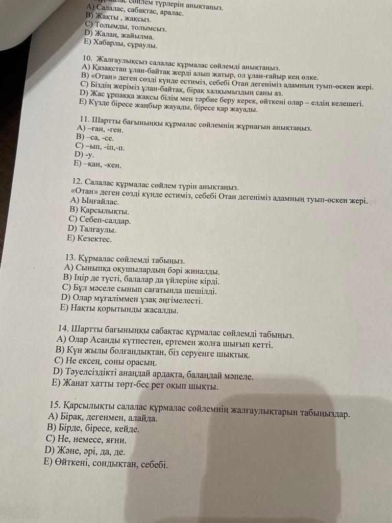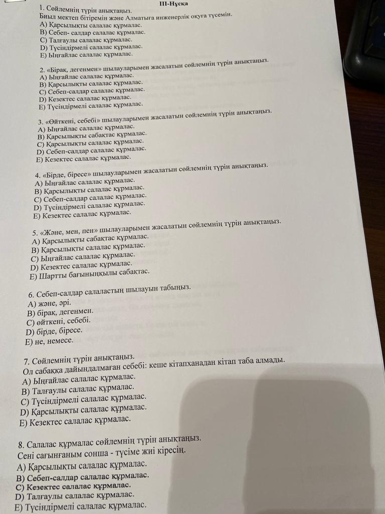 9. Құрмалас сөйлем түрлерін анықтаңыз.