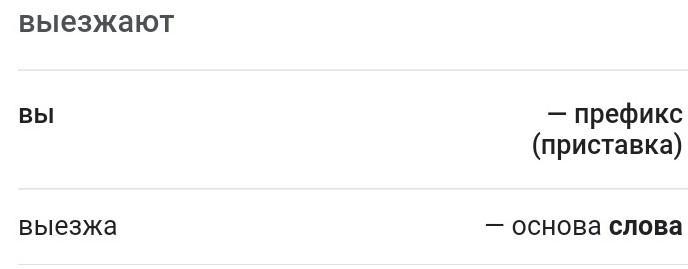 вы— приставка,езж— корень,а— суффикс,ют— окончание,выезжа— основа слова.Рад помочь