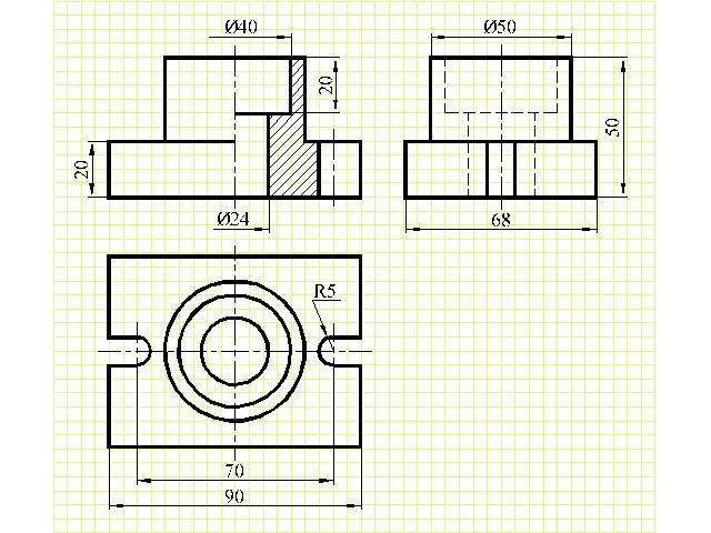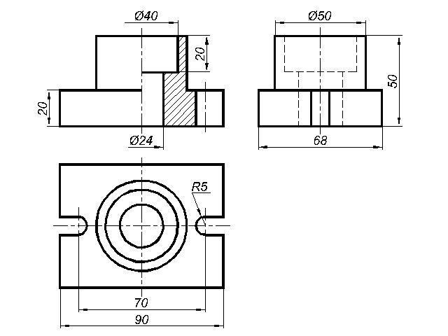 Сделайте три вида, на месте главного вида, соедините половину вида и половину разреза.