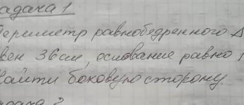 периметр равно бедренного треугольника равен 36см основание равно 10 см. Найти боковую сторону.