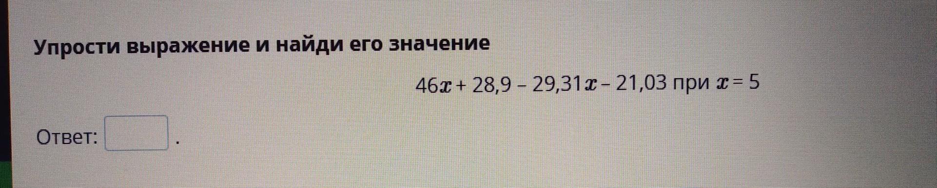 Ну вот смотри 46×5+28.9-29.31×5-21,03=? Сначала умножаем получается: 230+28.9-146.55-21.03 Теперь вычисляем сумму или разность-получается 91.32