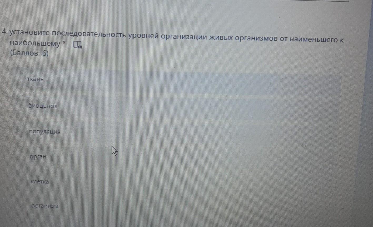 Клетка - ткань - орган - организм - биоценоз - популяция