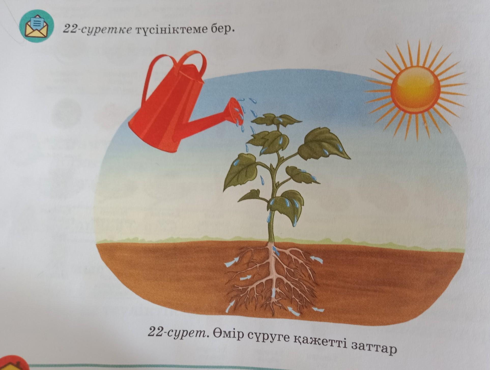 Бул суретте өсымдыкке керекті нәрселерді істеуде.