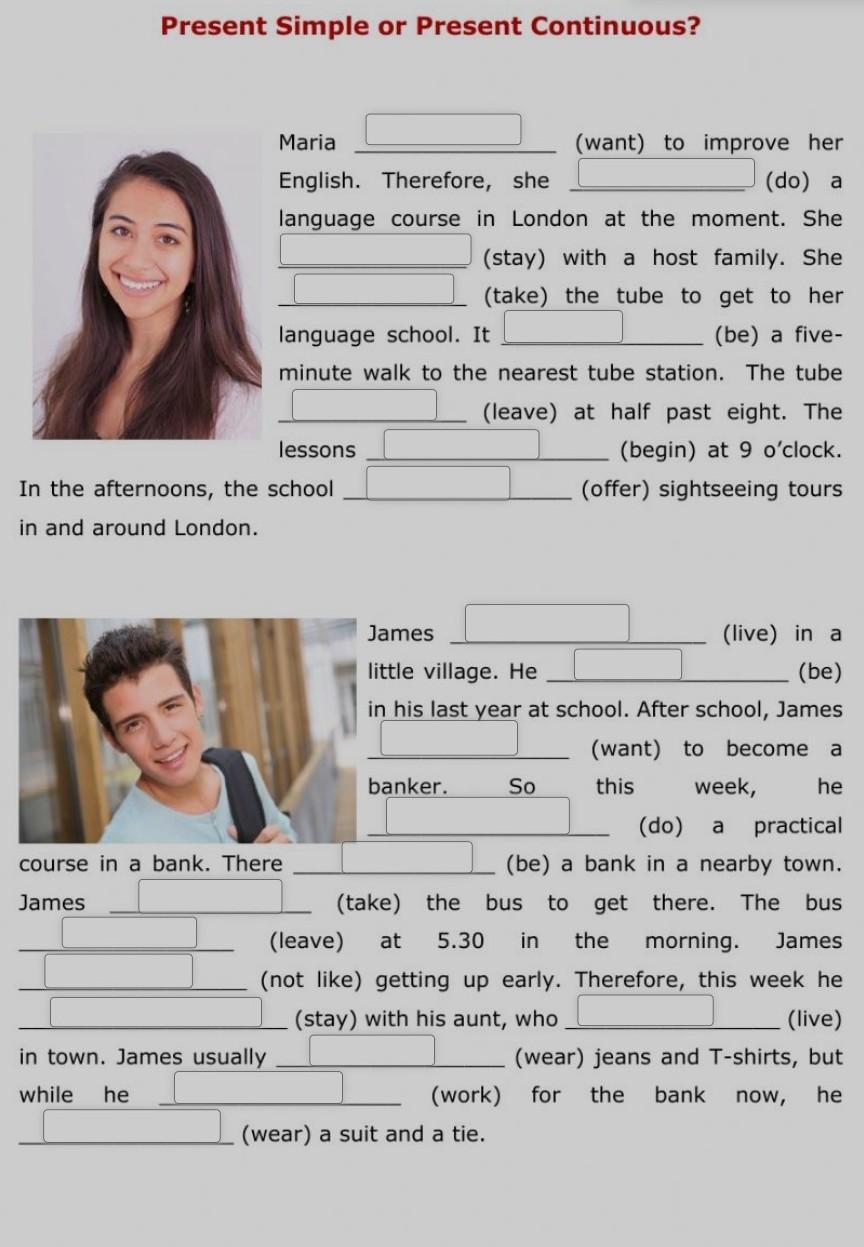 lives, is, wants, is doing, is, takes, leaves, doesn't like, is staying, lives, wears, is working, is wearing