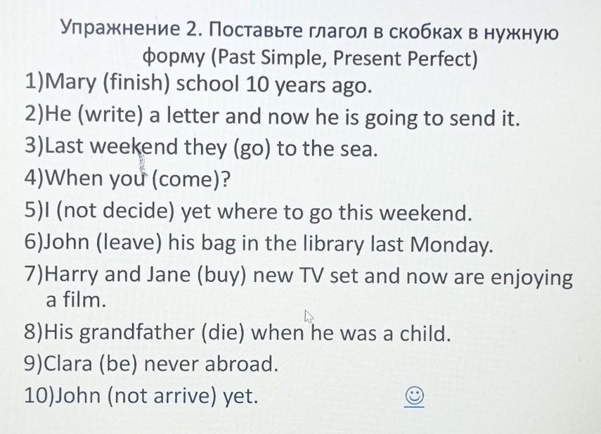 - Mary finished school 10 years ago.(past simple)