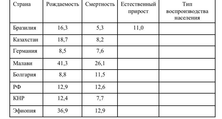 По естественному приросту определить тип воспроизводства населения стран мира. (данные 2017 года!)