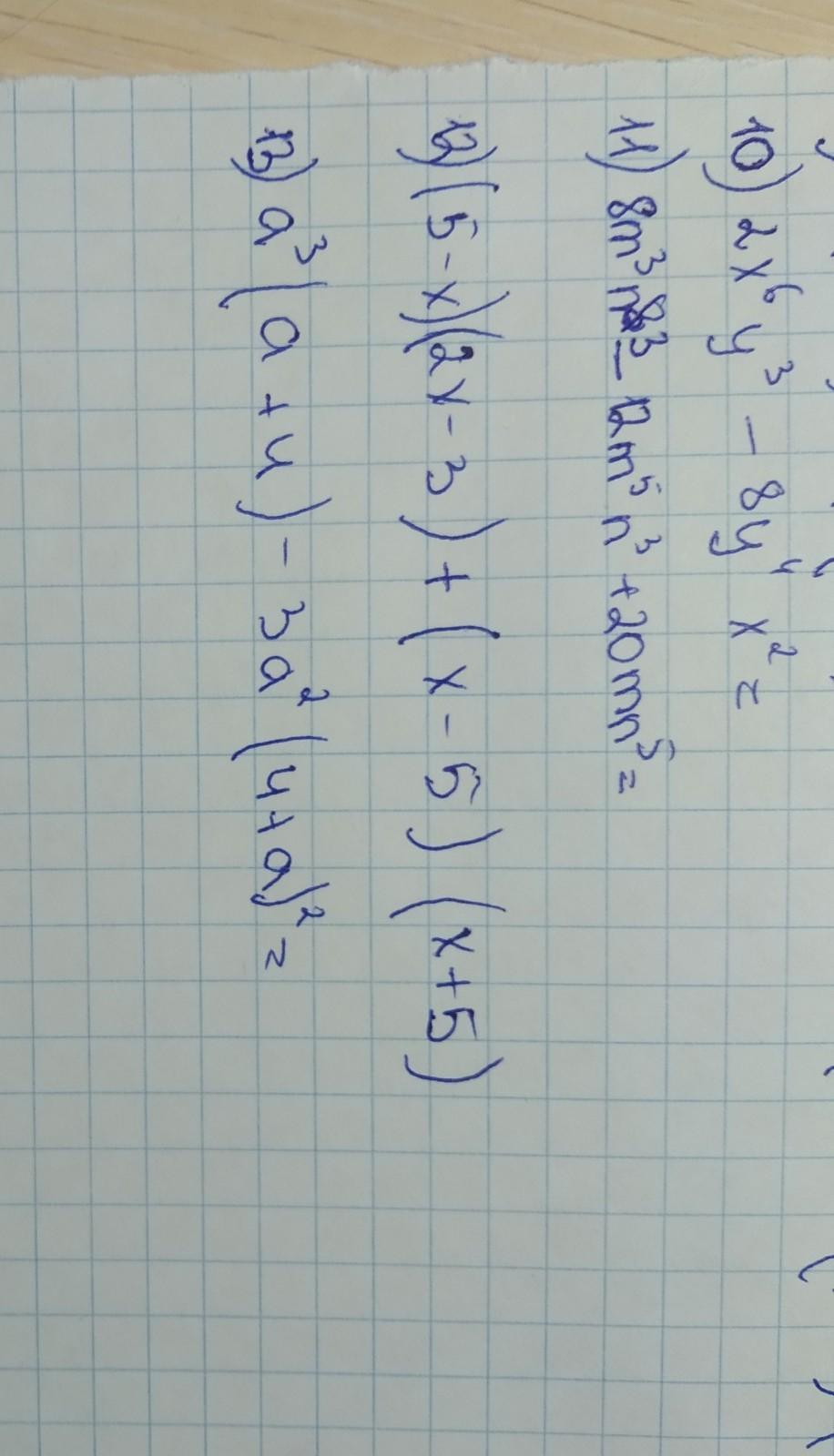 10) 2х⁶у³-8у⁴х²=2х²у³(х⁴-4у)