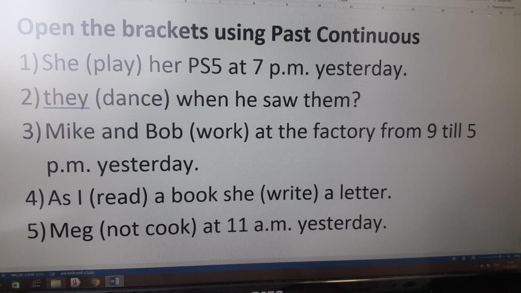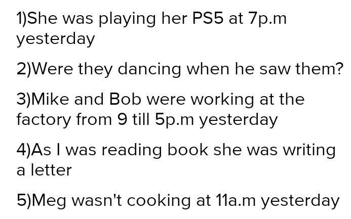 3)Mike and Bob were working at the factory from 9 till 5p.m yesterday
