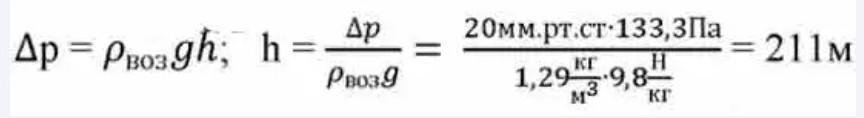 Идя по склону, туристы заметили, что показания барометра, который они взяли с собой в поход, уменьшились от 740 до 720 мм рт.ст. Вверх или вниз по склону шли туристы? Насколько они поднялись или опустились?