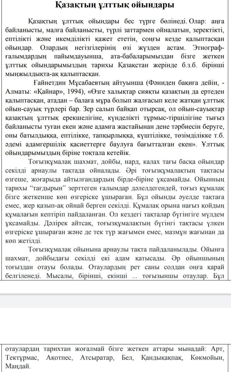Ұлттың ойындар туралы әрі ежелден келген тәрбие,салт дәстүр.