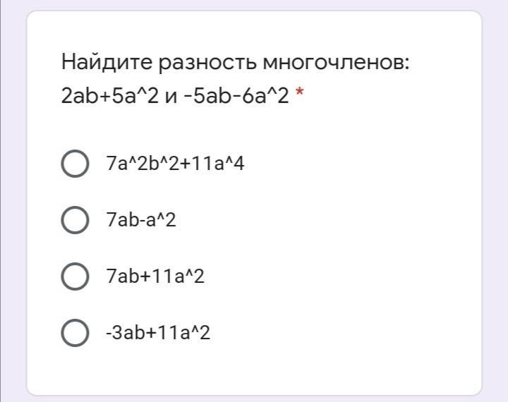 Ответ: 3 - ій варіант відповідей 7ab + 11a²