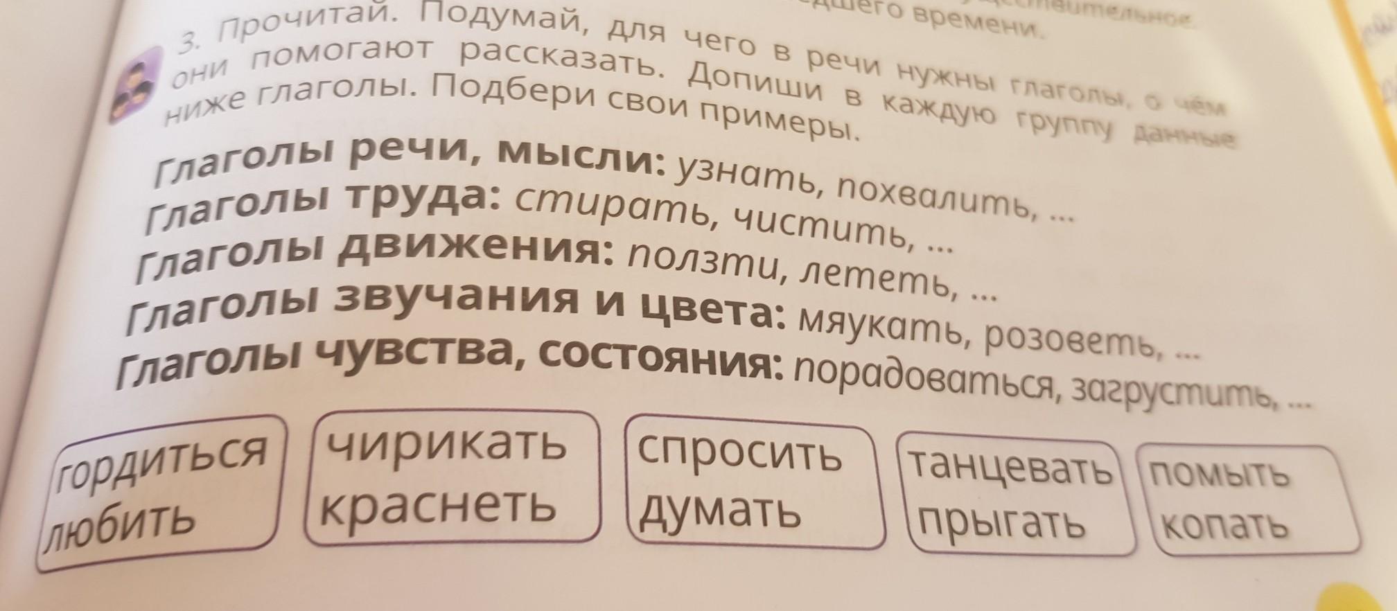 Глаголы звучания и цвета: чирикать, краснеть.