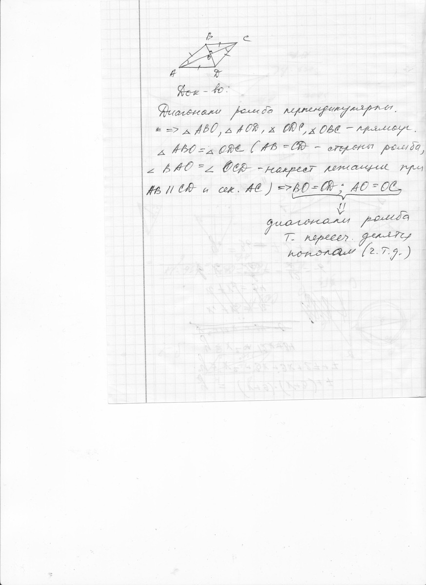 ромба попалам. Рассматривая подобные треугольники, образованными