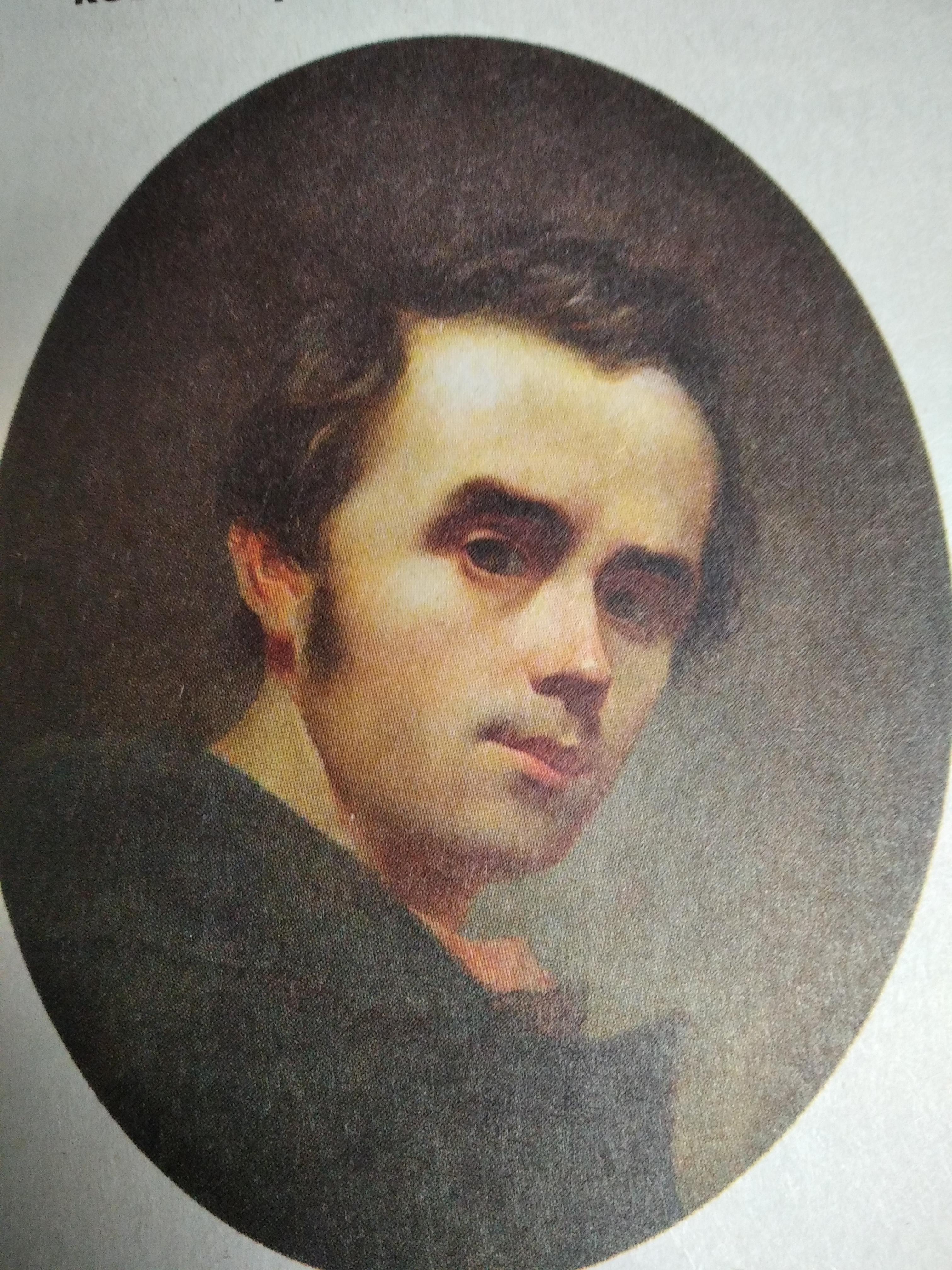 На цьому автопортреті зображений молодий, 26 -річний поет і художник. Відкрите обличчя художника дивиться на глядача. У нього чорне волосся, густі чорні брови, високе чоло, прямий ніс. Звичайний хлопець, у якого попереду все життя. Легка усмішка грає на губах. Погляд говорить багато про що. Тут і смуток від пережитих часів, будучи кріпаком, і очікування кращої долі.