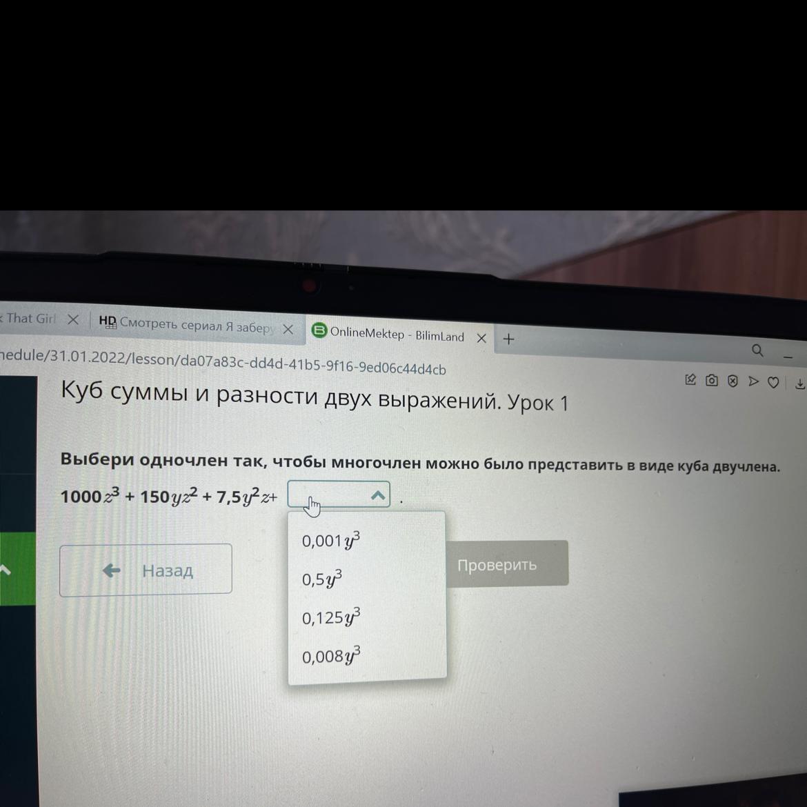 Выбери одночлен так чтобы многочлен можно было представить в виде куба двучлена