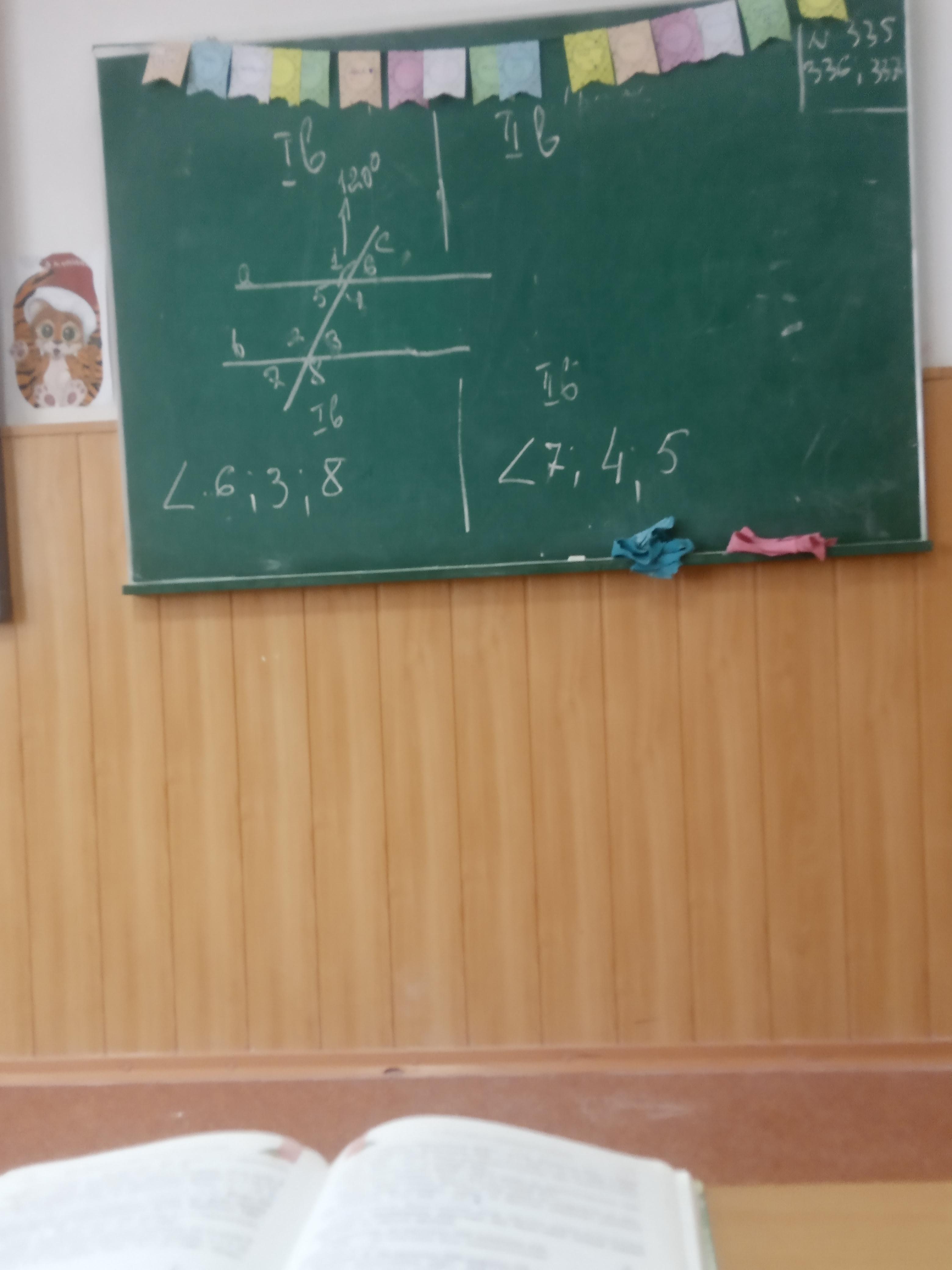 Угол 6 равен 180-120=60° как смежный с углом 1. Угол 6 равен углу 3, как соответственные, углу 5 как вертикальные, углу 7 как вертикальный к соответственному