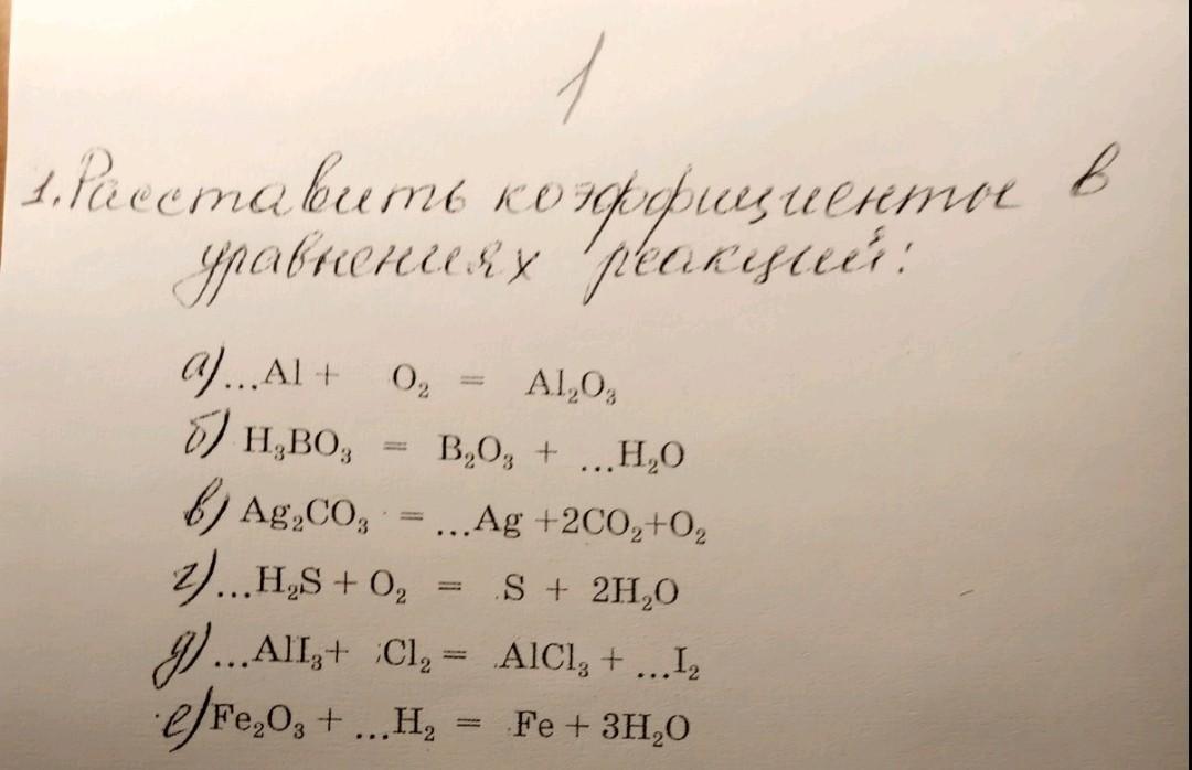 б) (2)H3BO3=B2O3+(3)H2O;