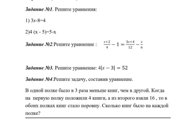 Пусть на первой полке - х книг , тогда на второй - 3х книг, после того как на первую положили 4 книги на ней стало х+4, а на второй взяли 16 на ней стало 3х-16