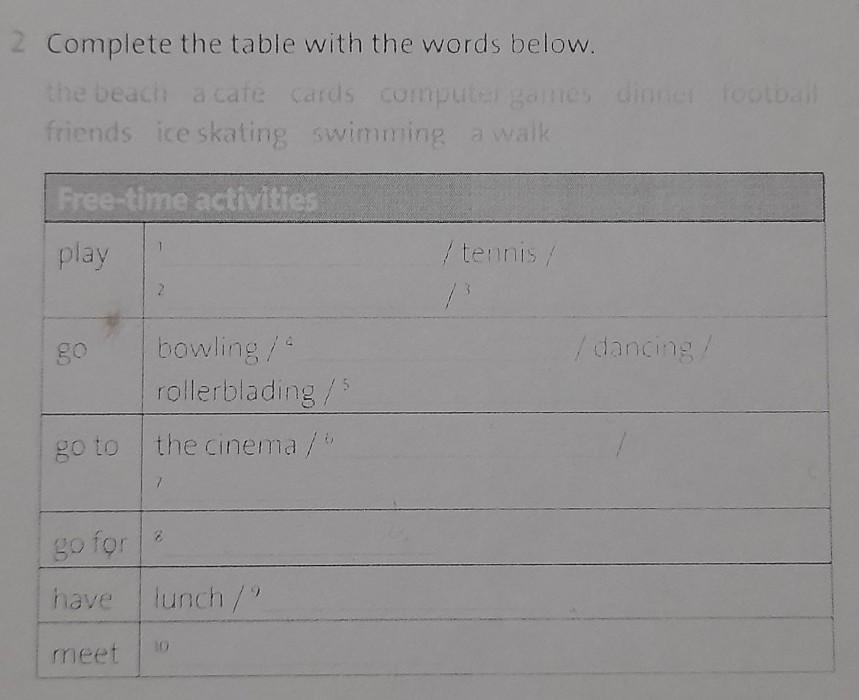 Play: cards/tennis/computer games/football