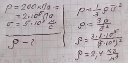 Срочно!!! Визначте густину газу при 200 кП, якщо середня квадратичка швидкість поступального руху молекул становить 500 м/с