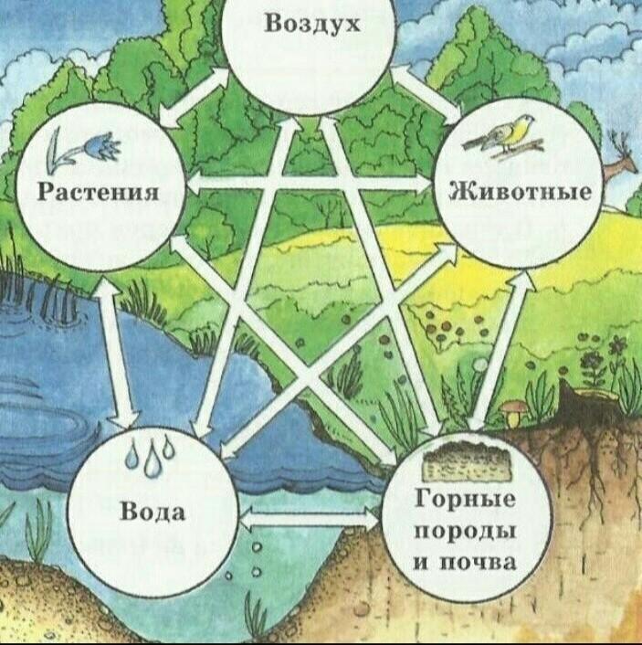 Природный комплекс - это географическое понятие, которое обозначает ряд взаимосвязанных между собой компонентов природы. Они могут охватывать как огромные meppumopии, так и совершенно небольшие участки Земли. Географическая оболочка - это глобальный природный комплекс. Дополните схему: Растения Животные Вода Горные породы и почва Рисунок 2. Состав компонентов природного комплекса.