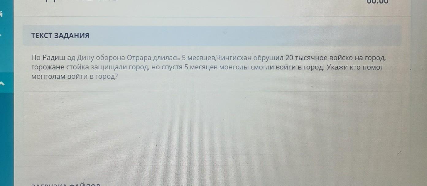 ТЕКСТ ЗАДАНИЯ По Радиш ад Дину оборона Отрара длилась 5 месяцев,Чингисхан обрушил 20 тысячное войско на горо, горожане стойка защищали город, но спустя 5 месяцев монголы смогли войти в город. Укажи кто помог монголам войти в город?