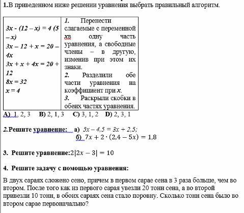 1.с 2. 5x-4.5=3x+2.5 2x=2.5+4.5 2x=7 X=3.5