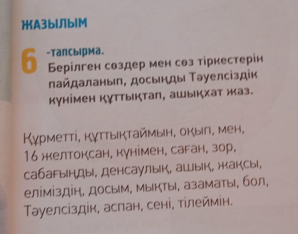 Құрметті ****** мен сені 16 желтоқсан, Тәуелсіздік күнімен құттықтаймын. Саған зор денсаулық, ашық аспан, сабағыңды жақсы оқы, еліміздің мықты азаматы бол деп тілеймін!!