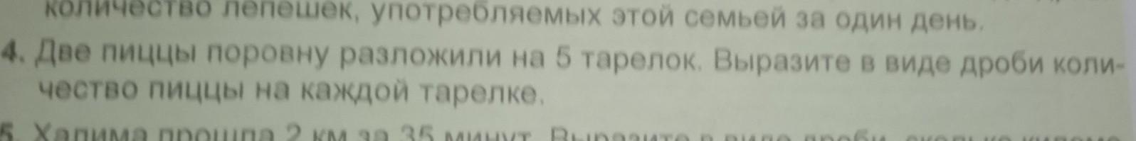 1) 2÷5=4/10=2/5 (пиццы) положили на каждую тарелку Ответ:2/5пиццы положили на каждую тарелку