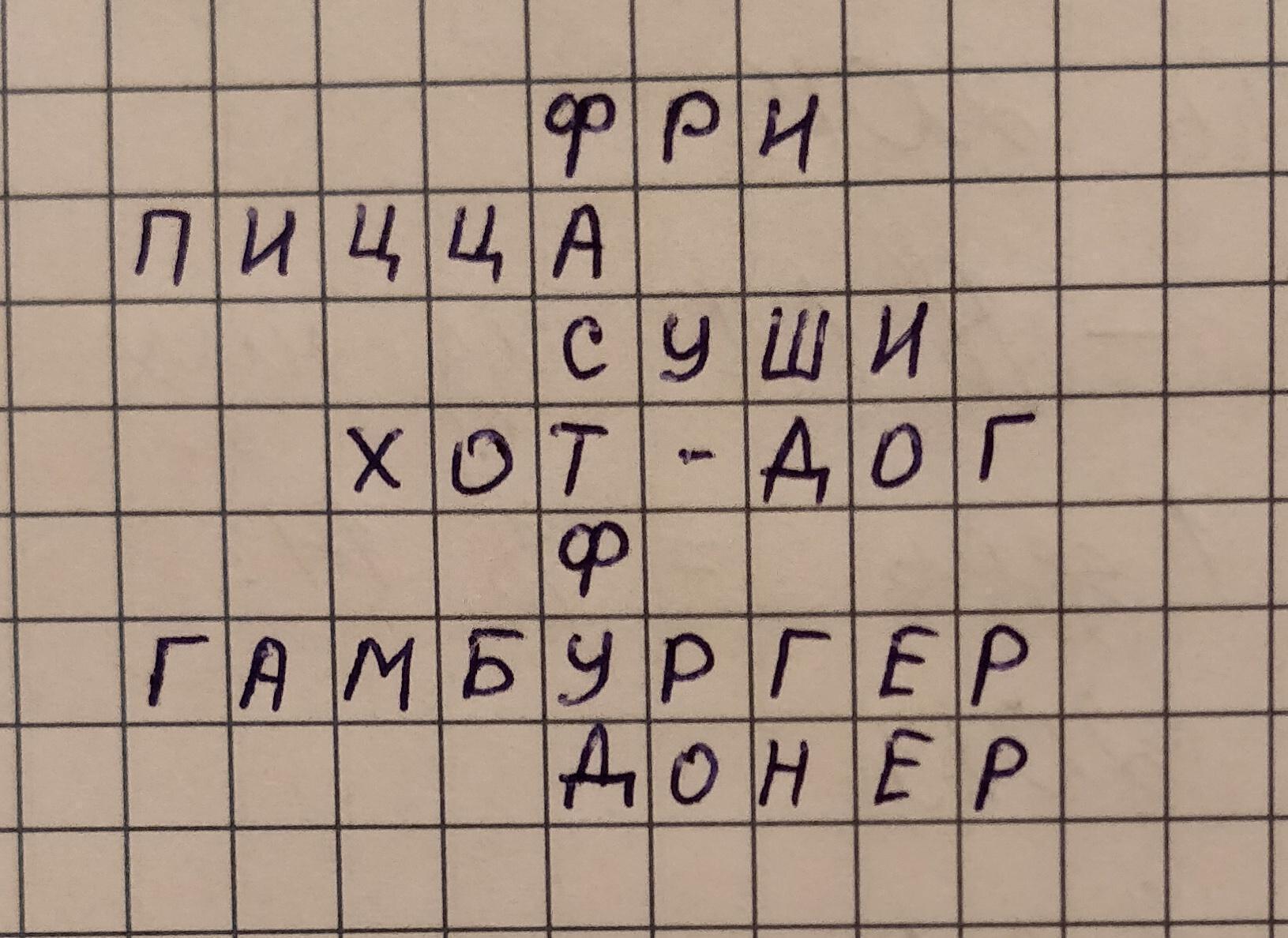 Фастфуд тақырыбы бойынша сөз жұмбақ құру.(составьте кроссворд на тему фастфуд).