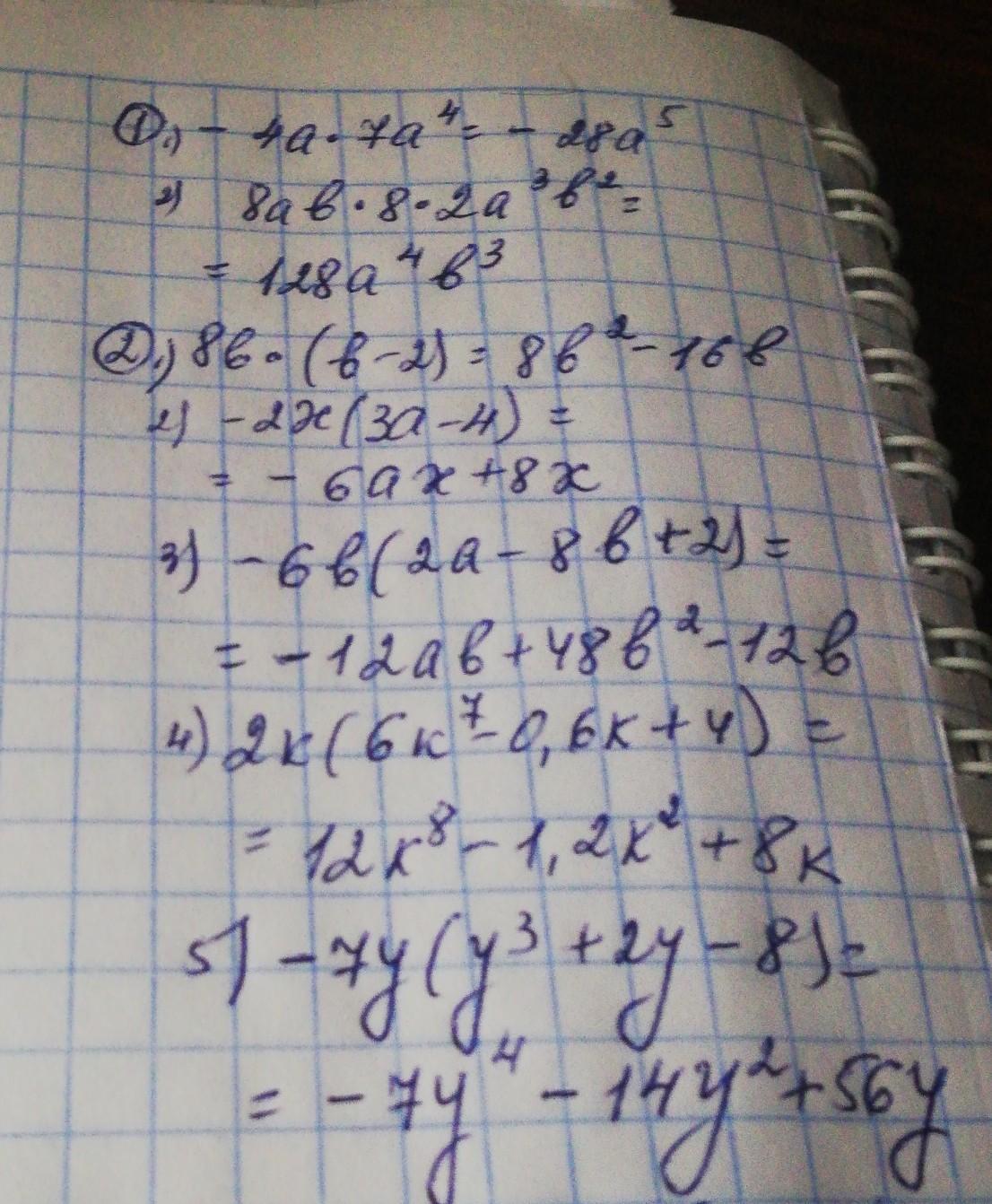 г)2к(6к7-0,6к+4) ; д) -7у(у3+2у-8).