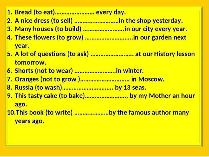 Розкрити дужки й поставити дієслова у правильному часі(present, past, future simple passive voice).