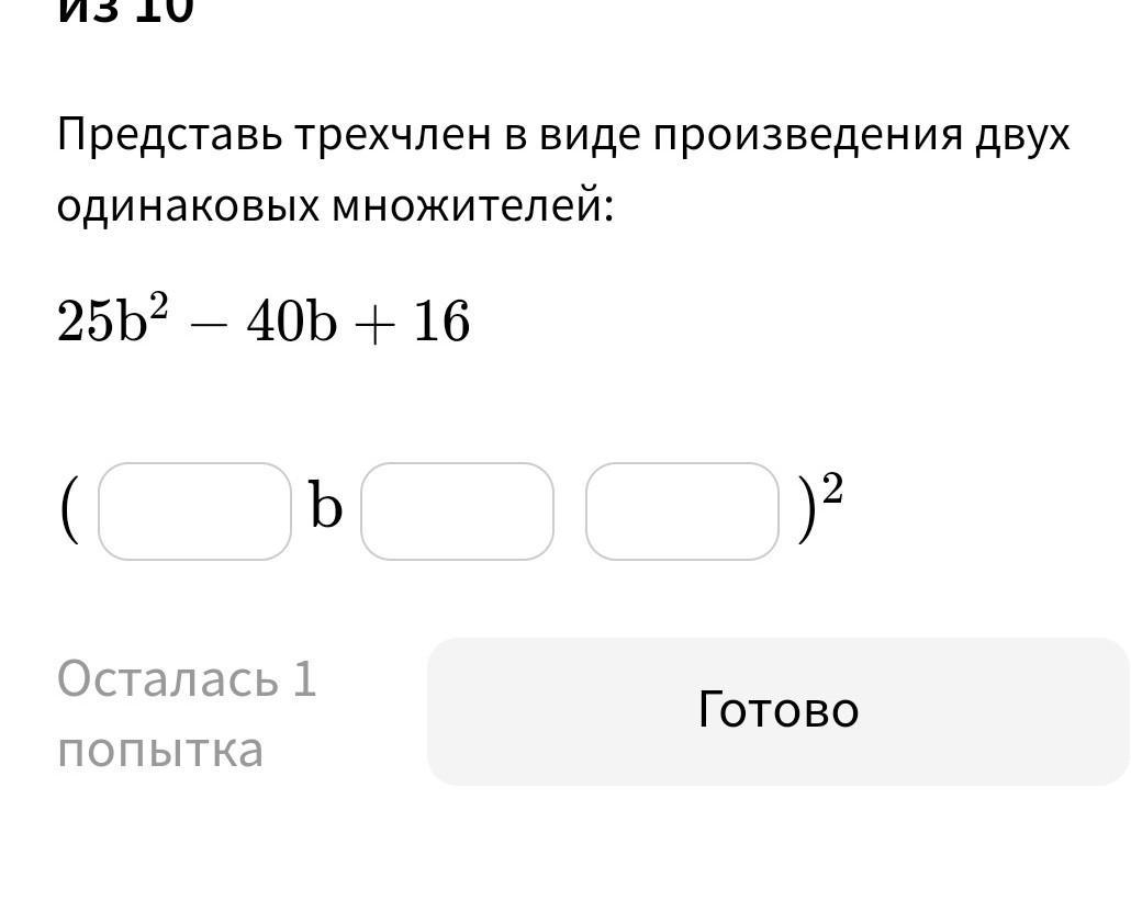Представь трехчлен в виде произведения двух одинаковых множителей:
